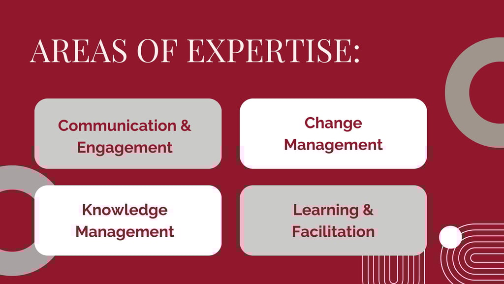 Optimise knowledge, change, communication, engagement strategies, programs, and frameworks. Want to streamline processes, create engaging content, build new platforms, enhance collaboration, develop a training program, or implement change initiatives? I can design tailored solutions for your team.